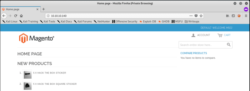 I had a quick look around the application and couldn’t come up with anything useful to gain access to the admin page (http://10.10.10.140/index.php/admin