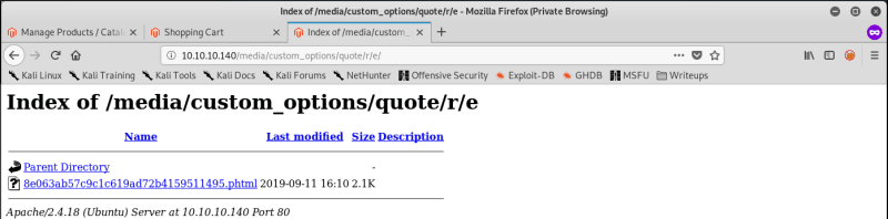 file is uploaded to http://10.10.10.140/media/custom_options/quote/quote/firstLetterOfYourOriginalFileName/secondLetterOfYourOriginalFileName